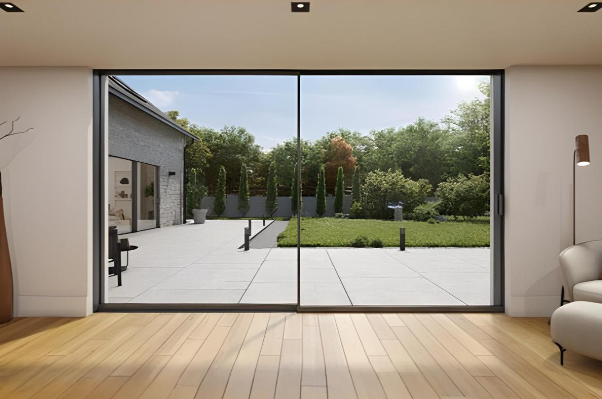 • Frameless Panoramic View: Enjoy uninterrupted vistas and flood your space with daylight thanks to the fully concealed outer frame.